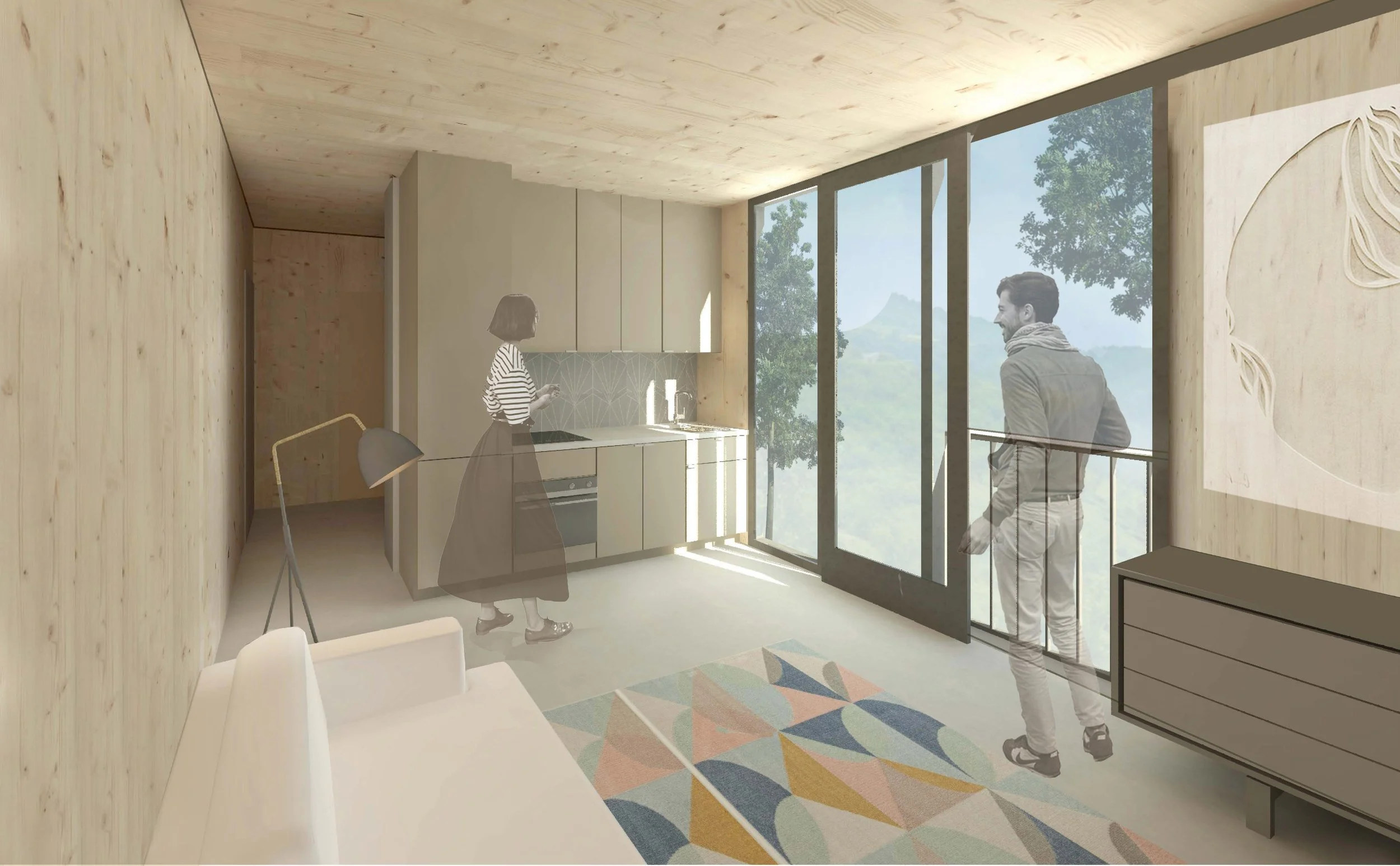 PathHouse is a modular mass timber housing system designed to link equitable housing production and job growth to reduction of forest fire risk.